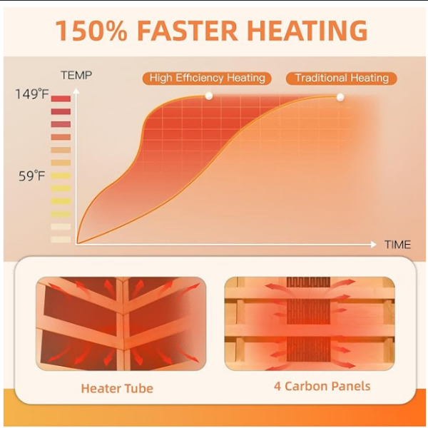【திறமையான வெப்பமூட்டும் தொழில்நுட்பம் 4 4 கார்பன் பேனல்கள் மற்றும் 1 கார்பன் குழாய் பொருத்தப்பட்டிருக்கும், எங்கள் 1 நபர் அகச்சிவப்பு ச una னா 360 டிகிரி சரவுண்ட் வெப்பத்தை வழங்குகிறது, இது வெப்ப விநியோகத்தை கூட உறுதி செய்கிறது. பொதுவாக, இது வெறும் 10-15 நிமிடங்களில் வெப்பமடைகிறது, இது உங்கள் ச una னா அனுபவத்தை தாமதமின்றி அனுபவிக்க அனுமதிக்கிறது.