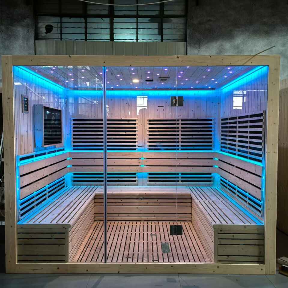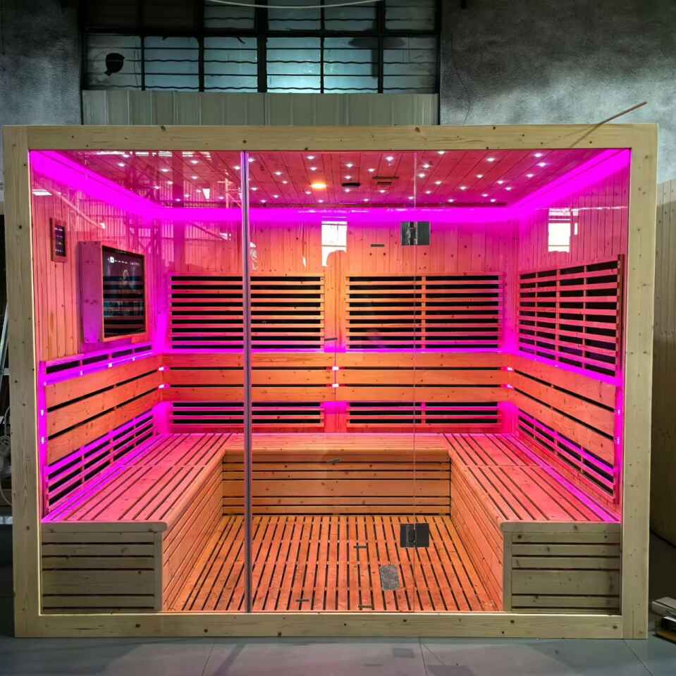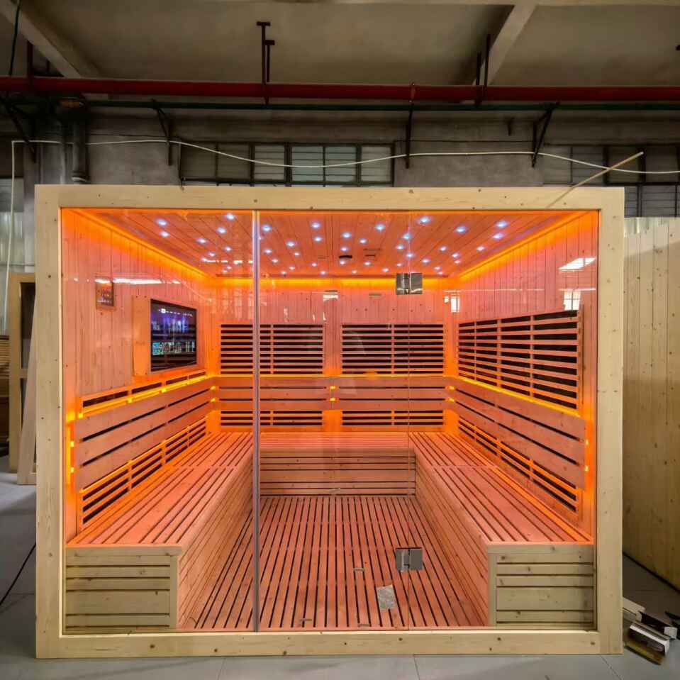5-10 பயனர்களுக்காக வடிவமைக்கப்பட்ட இந்த sauna அறை குடும்பக் கூட்டங்கள், நண்பர்கள் ஒன்றுகூடல்கள் அல்லது ஸ்பாக்கள் மற்றும் ஆரோக்கிய மையங்கள் போன்ற சிறிய வணிக இடங்களுக்கு ஏற்றதாக உள்ளது. உயர்தர சானா மரத்தால் கட்டப்பட்ட இது, உங்கள் இடத்திற்கு இயற்கையான, சூடான அழகியலைக் கொண்டு வரும்போது நீடித்து நிலைத்திருப்பதை உறுதி செய்கிறது.
