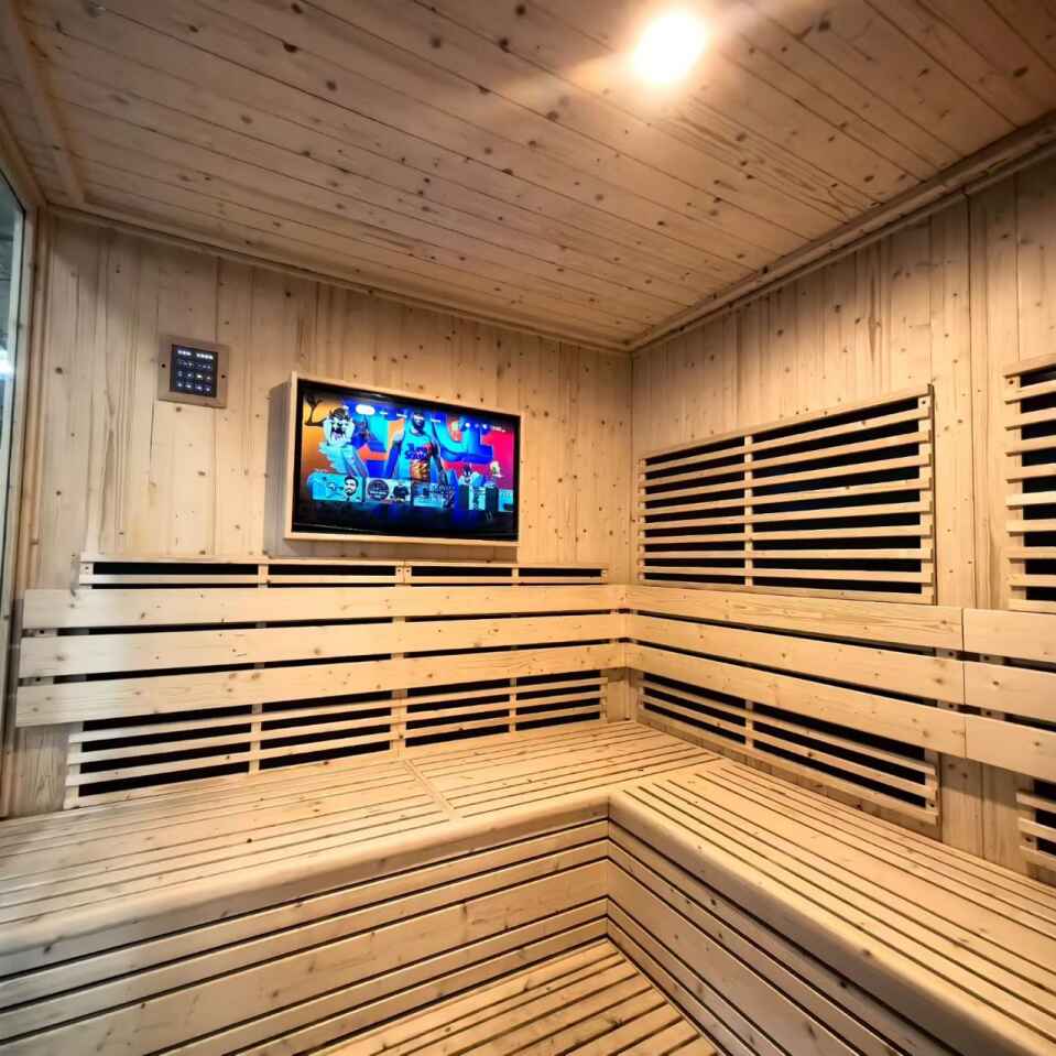 உள்ளமைக்கப்பட்ட LCD TV (படத்தில் தெரியும்) sauna அனுபவத்தை மாற்றுகிறது: