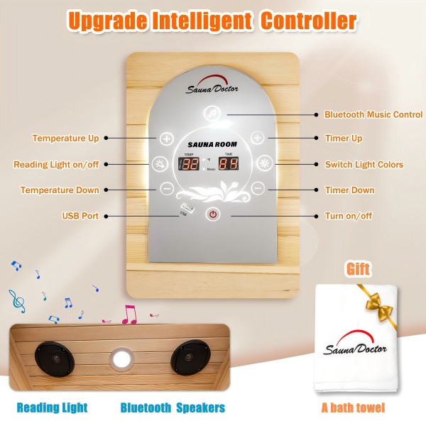 அடிப்படை sauna செயல்பாடுகளுக்கு கூடுதலாக, எங்கள் நான்கு நபர்களின் வீட்டு Sauna அறை வண்ண சிகிச்சை, இசை பின்னணி அமைப்பு மற்றும் சரிசெய்யக்கூடிய LED லைட்டிங் விளைவுகளை உள்ளடக்கியது, இது உங்கள் தனிப்பட்ட விருப்பங்களுக்கு ஏற்ப வளிமண்டலத்தை சரிசெய்ய அனுமதிக்கிறது. நீங்கள் ஆழமாக ஓய்வெடுக்க விரும்பினாலும் அல்லது உயிர்ச்சக்தியைத் தூண்ட விரும்பினாலும், உங்களுக்காக மிகவும் பொருத்தமான பயன்முறையை நீங்கள் காணலாம். கூடுதலாக, சில மாடல்களில் மசாஜ் இருக்கைகள் பொருத்தப்பட்டுள்ளன, அவை மென்மையான அதிர்வு மற்றும் பிசைவதன் மூலம் முழு உடலையும் தளர்வின் இனிமையான உணர்வைத் தருகின்றன.