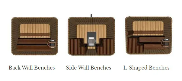 குழு பயன்பாட்டிற்காக பிரத்யேகமாக திறந்த உட்புறத்துடன் வடிவமைக்கப்பட்டுள்ளது, மூன்று இருக்கை தளவமைப்பு விருப்பங்களை ஆதரிக்கிறது: பின்புறச் சுவரில் பொருத்தப்பட்டவை, பக்கச் சுவரில் பொருத்தப்பட்டவை மற்றும் எல் வடிவில். இது வெவ்வேறு குழு அளவுகள் மற்றும் பயன்பாட்டு பழக்கவழக்கங்களுக்கு ஏற்றது (குடும்பக் கூட்டங்கள் அல்லது நண்பர்களின் சந்திப்புகளுக்கு எளிதில் இடமளிக்கும்). இருக்கைகள் ஒரு அடுக்கு வெற்று அமைப்பைப் பின்பற்றுகின்றன, உட்காருவதற்கும் படுப்பதற்கும் வசதியை உறுதிசெய்கிறது, அதே நேரத்தில் உள் காற்று சுழற்சியை எளிதாக்குகிறது, இது சானா அனுபவத்தை அதிக சுவாசிக்கக்கூடியதாகவும், அதிக வெப்பநிலை சூழல்களில் குறைவான அடைப்புத்தன்மையுடனும் இருக்கும்.
