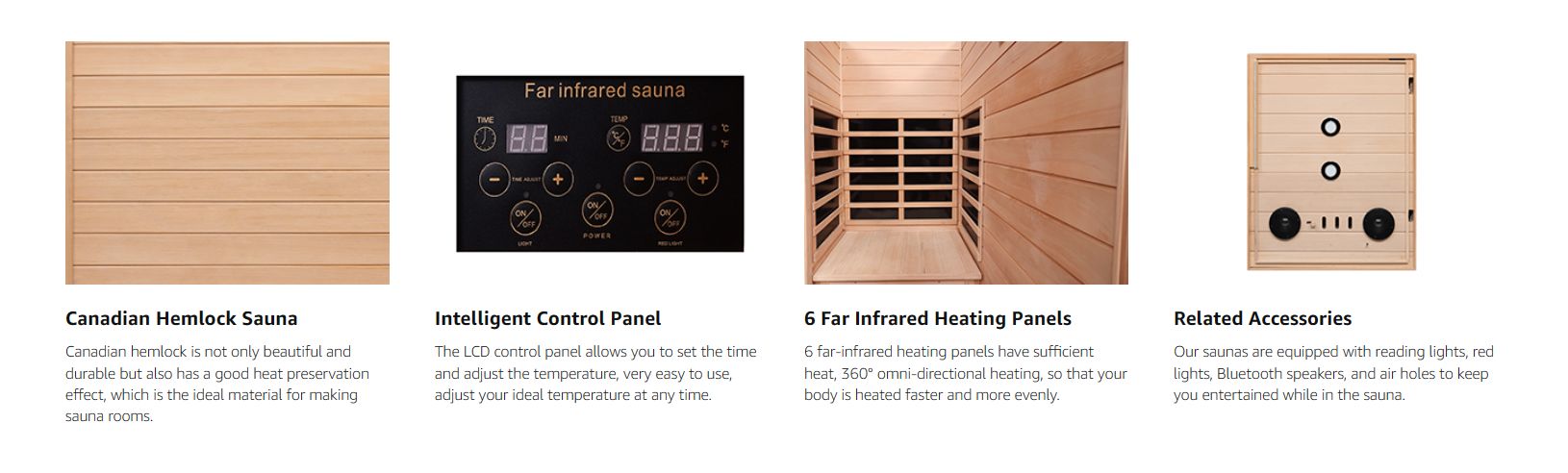 · 【360° ஆல்-ரவுண்ட் ஹீட்டிங், ஸ்மார்ட் என்டர்டெயின்மென்ட் சிஸ்டம் பொருத்தப்பட்டுள்ளது】:மற்ற இன்டோர் சானாவுடன் ஒப்பிடும்போது, எங்களிடம் 6 தூர அகச்சிவப்பு எபோக்சி ஹீட்டிங் பேனல்கள் உள்ளன, வேகமாகவும் சமமாகவும் வெப்பமடையும், அதிகபட்ச வெப்பநிலை 60° (140℉) , எனவே நீங்கள் இனி போதிய வெப்பம் பற்றி கவலைப்பட வேண்டியதில்லை. 1*எல்இடி ரீடிங் லைட், 1*சிவப்பு விளக்கு மற்றும் 1*புளூடூத் ஸ்பீக்கர் (புளூடூத் சாதனத்தின் பெயர்: பிடி ஸ்பீக்கர்) பொருத்தப்பட்டிருக்கும், நீங்கள் சானாவில் இருக்கும்போது இசையைப் படிக்கலாம் மற்றும் கேட்கலாம்.